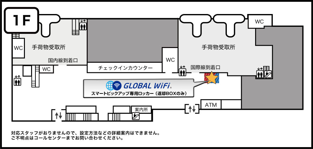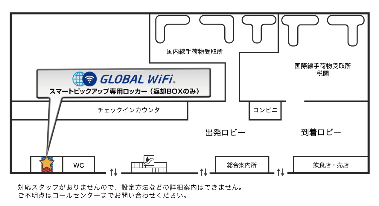 那覇空港 国際線ターミナル 1階 到着ロビーにある専用ロッカー設置場所までお越しください。