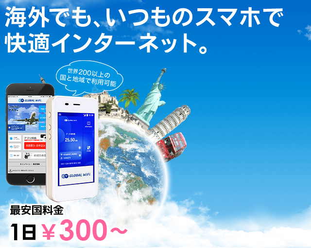 現地の公衆無線LAN(フリーWiFi)は、端末情報や個人情報を第三者に取得される恐れがあり非常に危険で、さらにその場所でしかインターネットが使えないので様々な場所に移動する際は非常に不便です。