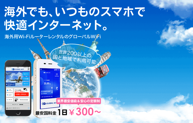 現地の公衆無線LAN(フリーWiFi)は、端末情報や個人情報を第三者に取得される恐れがあり非常に危険で、さらにその場所でしかインターネットが使えないので様々な場所に移動する際は非常に不便です。