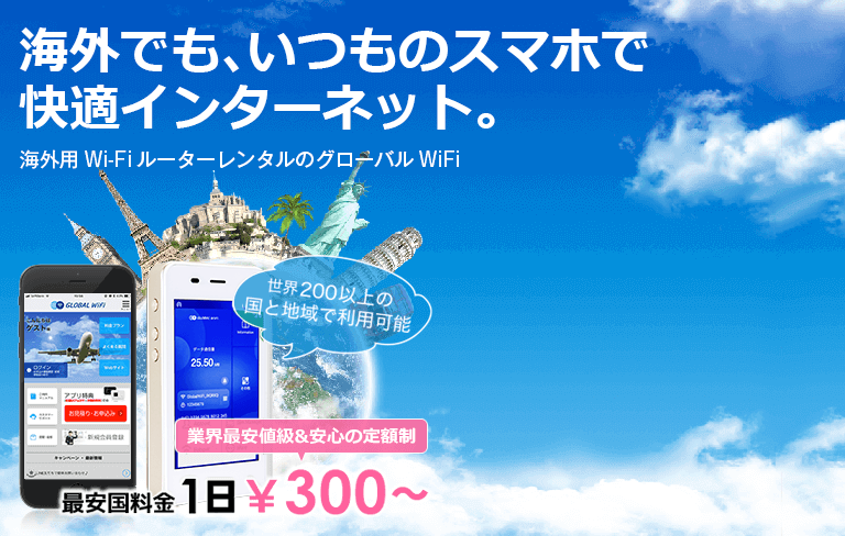 現地の公衆無線LAN(フリーWiFi)は、端末情報や個人情報を第三者に取得される恐れがあり非常に危険で、さらにその場所でしかインターネットが使えないので様々な場所に移動する際は非常に不便です。