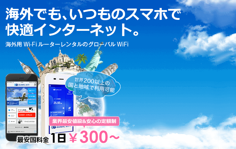 現地の公衆無線LAN(フリーWiFi)は、端末情報や個人情報を第三者に取得される恐れがあり非常に危険で、さらにその場所でしかインターネットが使えないので様々な場所に移動する際は非常に不便です。