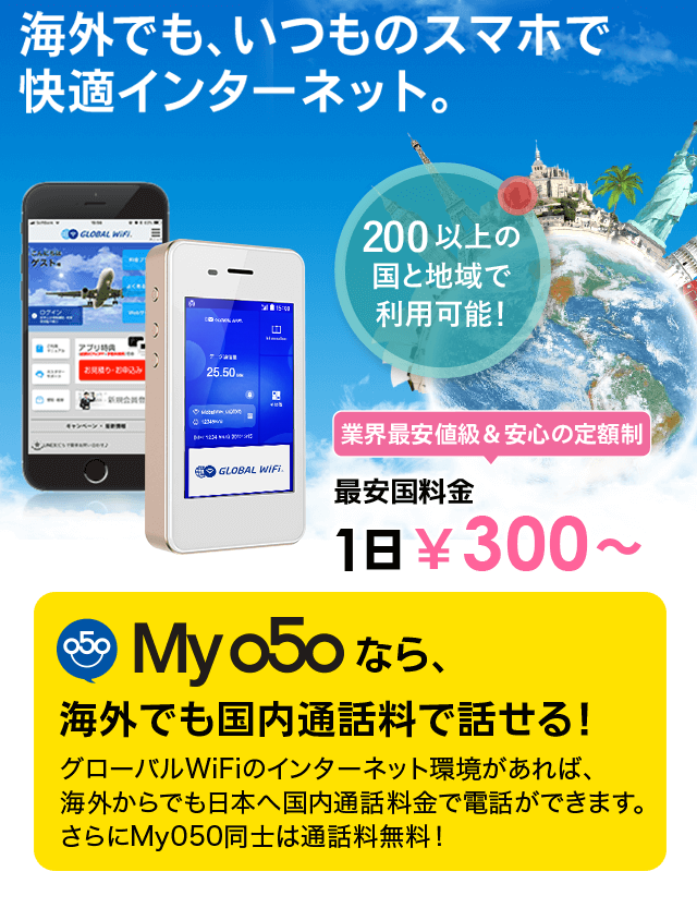 現地の公衆無線LAN(フリーWiFi)は、端末情報や個人情報を第三者に取得される恐れがあり非常に危険で、さらにその場所でしかインターネットが使えないので様々な場所に移動する際は非常に不便です。