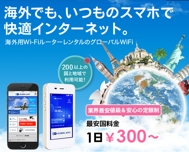 現地の公衆無線LAN(フリーWiFi)は、端末情報や個人情報を第三者に取得される恐れがあり非常に危険で、さらにその場所でしかインターネットが使えないので様々な場所に移動する際は非常に不便です。