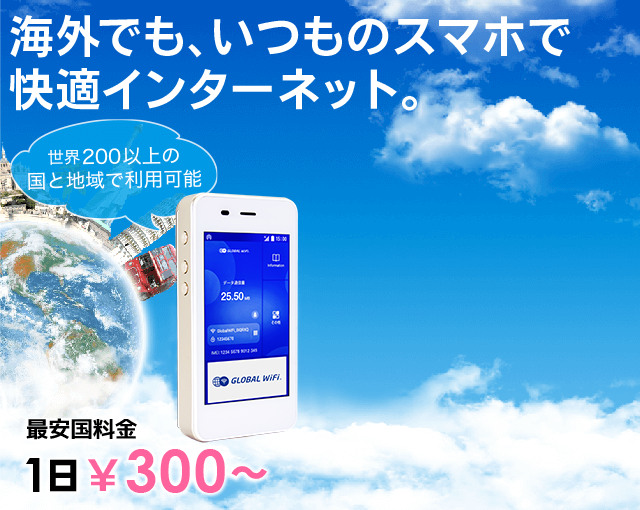 現地の公衆無線LAN(フリーWiFi)は、端末情報や個人情報を第三者に取得される恐れがあり非常に危険で、さらにその場所でしかインターネットが使えないので様々な場所に移動する際は非常に不便です。