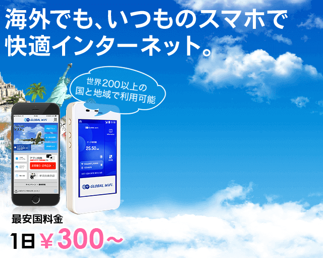 世界200以上の国と地域で使えるパケット定額制の海外用WiFiレンタルサービスです。