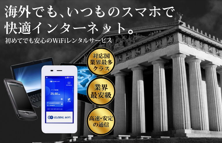 グローバルWiFiなら、携帯会社の海外パケットに比べて半額以下で利用可能。