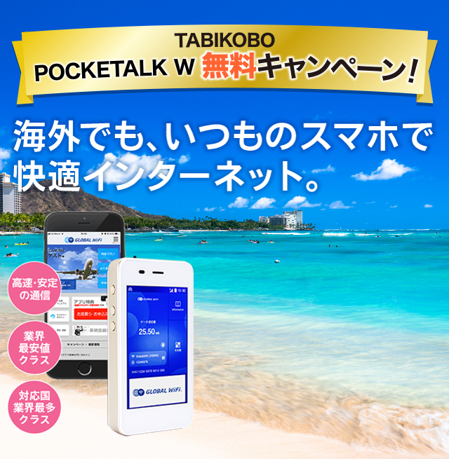 グローバルWiFiなら、館内・スポット以外のところはもちろん、移動中でもネット接続ができるので、地図アプリやガイドブックアプリ、翻訳アプリなど、使いたいときに自由に使う事ができます。