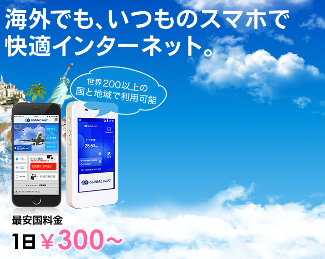 現地の公衆無線LAN(フリーWiFi)は、端末情報や個人情報を第三者に取得される恐れがあり非常に危険で、さらにその場所でしかインターネットが使えないので様々な場所に移動する際は非常に不便です。