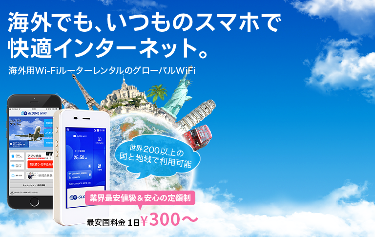 現地の公衆無線LAN(フリーWiFi)は、端末情報や個人情報を第三者に取得される恐れがあり非常に危険で、さらにその場所でしかインターネットが使えないので様々な場所に移動する際は非常に不便です。