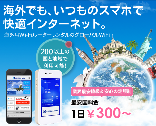 現地の公衆無線LAN(フリーWiFi)は、端末情報や個人情報を第三者に取得される恐れがあり非常に危険で、さらにその場所でしかインターネットが使えないので様々な場所に移動する際は非常に不便です。