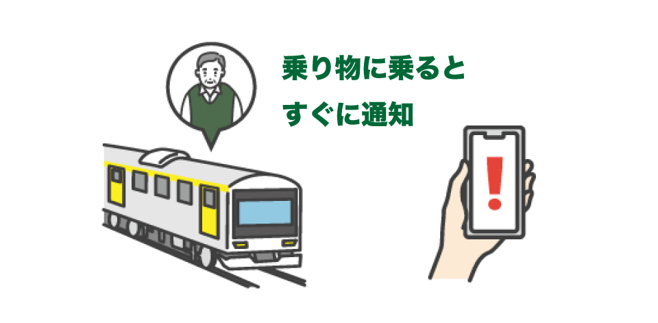 設定した速度以上で移動すると通知されるため、電車やバスなど乗り物で移動していることを把握できます。