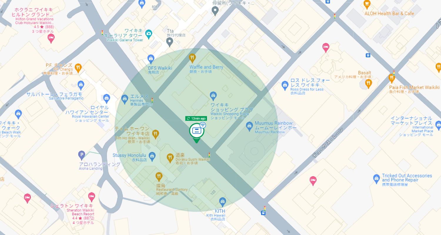 高層ビルの多い場所や建物内、地下、金属に覆われている環境では位置取得が難しく、位置情報が更新されない場合がございます。
