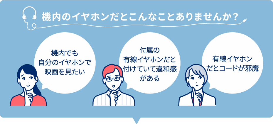 使い慣れた自分のワイヤレスイヤホンで、機内エンターテインメントが快適に楽しめます。