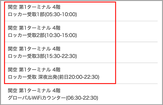 南ウイング4階(出発ロビー) JWiFi&Mobileカウンター店舗内にあるロッカーまでお越しください。