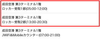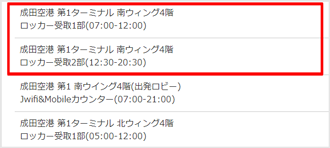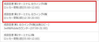 場所 第2ターミナル 3階 国際線出発ロビー(北団体カウンター前)ロッカー