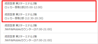 2部(受取可能 15:30-19:00)WEBでのお申込みはご出発日2日前の15時までが期限となりますが、ご出発日当日にロッカー付近に設置のQRコードからお申込みいただくことで、即日レンタルができます。マップ