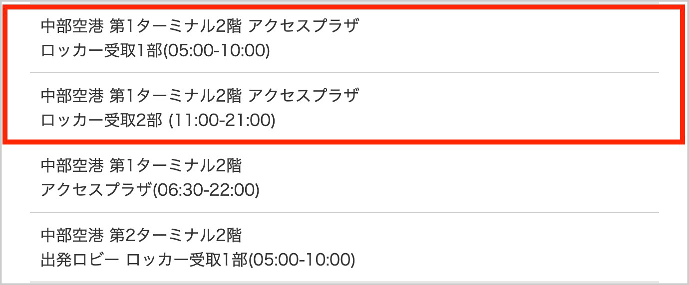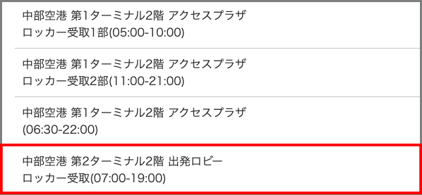 ロッカー受取営業時間05:30-15:00