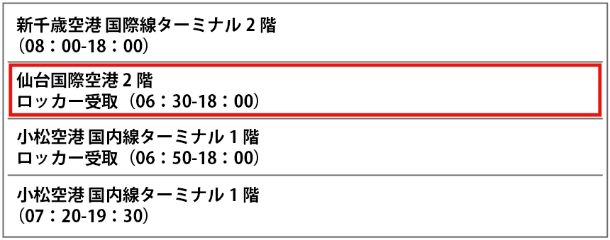 仙台国際空港 2階出発ロビーにあるロッカーまでお越しいただき、